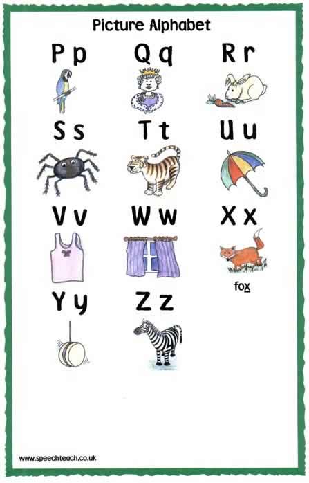 | Picture Alphabet Introduction | Letters a to o | Letters p to z |